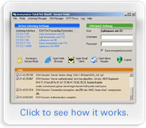 MITM attackers are able to read, insert, and modify online communications between two parties without either one knowing that their communications had been compromised. Total Net Shield protects you from this attack by encrypting all of your online communications with SSH tunneling.