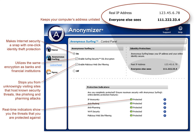 Anonymizer Anonymous Surfing uses proprietary technology that keeps your IP address hidden from the outside World. Anonymous Surfing uses