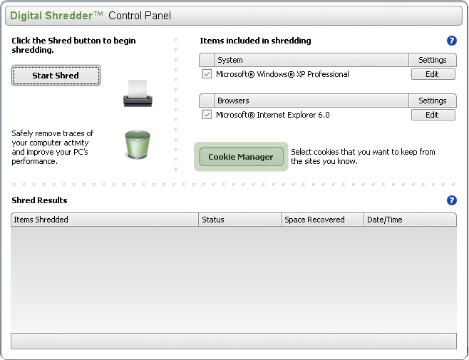 For sites you trust and log in to frequently, like your online bank or favorite stores, you may want to protect cookies from being shredded. The Cookie Manager displays the domain names (such as www.ebay.com) for all of the cookies detected on your computer in the Shred List.