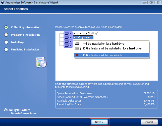 Double click on the Anonymizer Program to start the Uninstall Wizard.