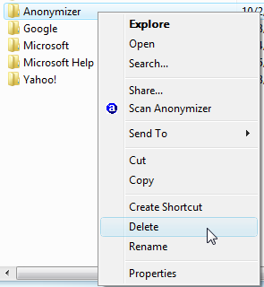 Locate the Anonymizer Folder, right click on it and select Delete.