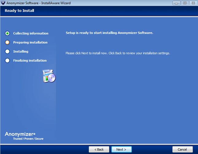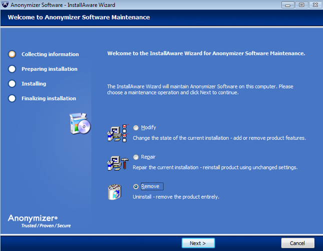 Double click on the Anonymizer Program to start the Uninstall Wizard.