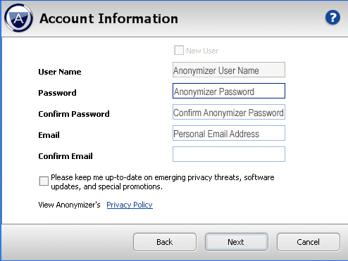 To begin enjoying the benefits of your Anonymizer® Software, you must first activate your components by entering your license key(s). The following steps will walk you through the process. Keep in mind that each Anonymizer product you have subscribed to will have a different license key. To activate your subscriptions, you must enter each license key accordingly.
