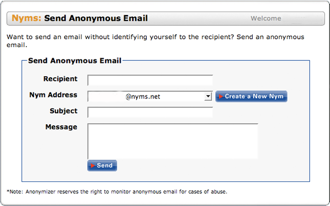 Anonymizer® Nyms™ Web v1.1 - Sending Anonymous E-Mail