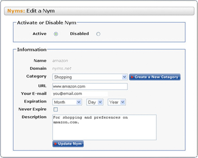 Anonymizer® Nyms™ Web v1.1 - Editing Nyms