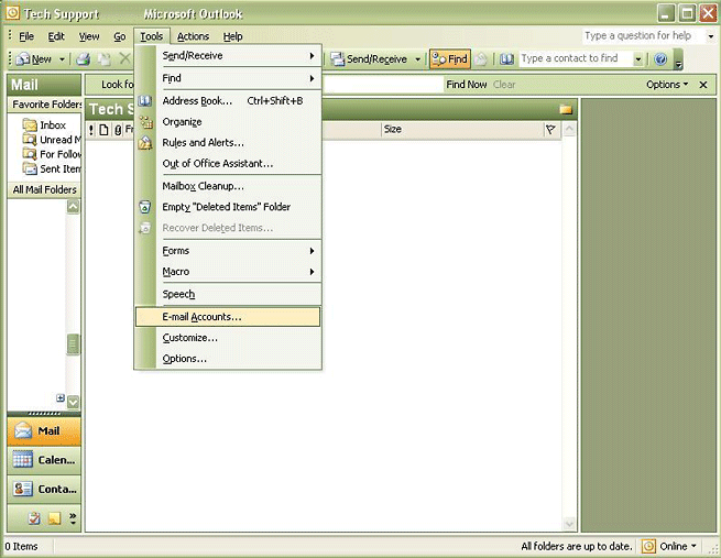 Open your Outlook mail client, go to Tools then select Email Accounts.