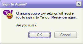 After changing your connection preferences you will need to sign back in to your messenger client. Click OK to proceed.