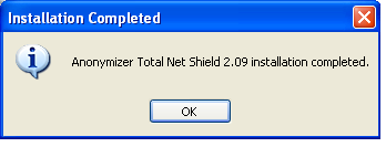 Once the installation is complete, you will get a message stating the Anonymizer Total Net Shield installation has been completed. Click "OK" to continue to the Configuration Wizard.