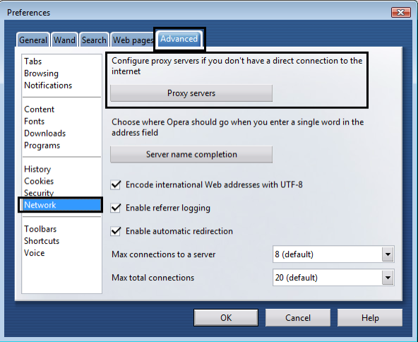 Within the Preferences window, click on Advanced, then Network at the bottom. Click on the Proxy Servers button.