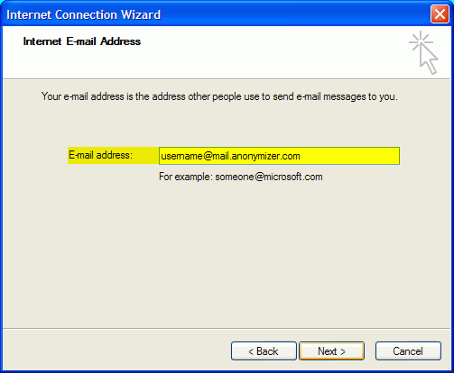 This next window you want to enter in your Anonymizer email address and click ‘Next’ to continue.