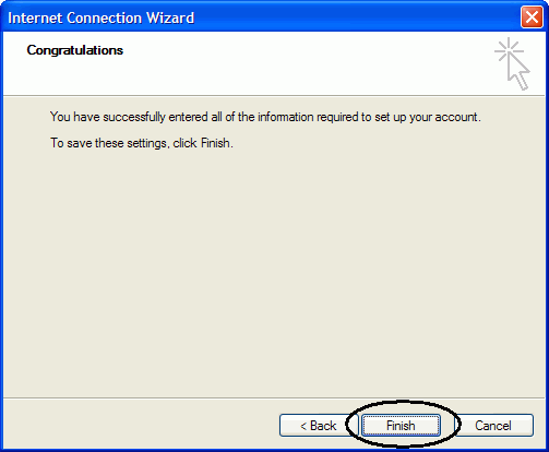 The next window will show you that you have completed the set up and you are now finished. Please click on the ‘Finish’ button to complete the process of your email account set up.