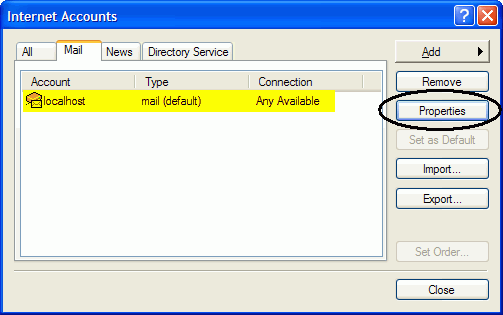 On the Internet Account, Mail window, select your Anonymizer Email Account and click ‘Properties.