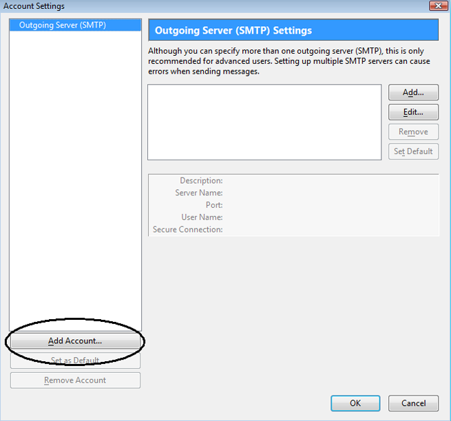 The Total Net Shield Configuration Wizard will automatically set up the Total Net Shield email account in your mail client when you click Create Account. If you would like to manually add the Total Net Shield email account to your email client please follow the steps below.