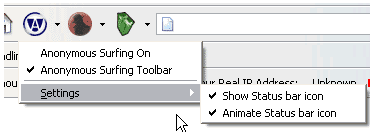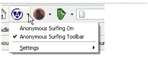 You can also click on the small pull-down triangle next to the Anonymous Surfing button to display the menu, and then select the Anonymous Surfing toolbar option.