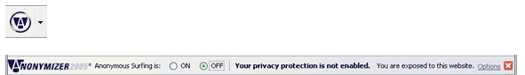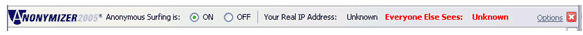 To display the Anonymous Surfing toolbar, simply click on the Anonymous Surfing button and the toolbar will appear.