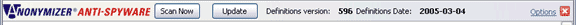 The “Update” button will check the Anonymizer servers to see if your Anti-Spyware application is using the most current definitions file. The definitions file is used by the Anti-Spyware program to recognize spyware on your computer.