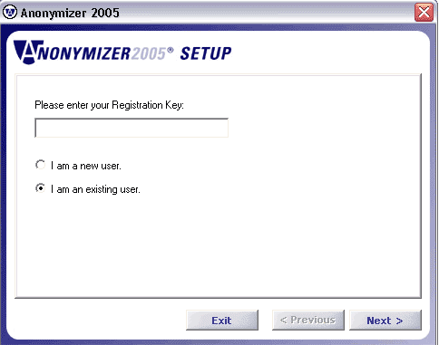 Before you can use Anonymous Surfing, you’ll need to activate your subscription account. Double-click the desktop icon that says “Anonymizer 2005” or launch the program through the Windows Start Menu.