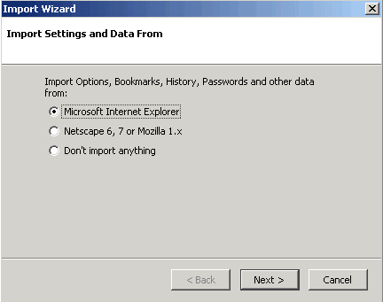Importing bookmarks from Internet Explorer